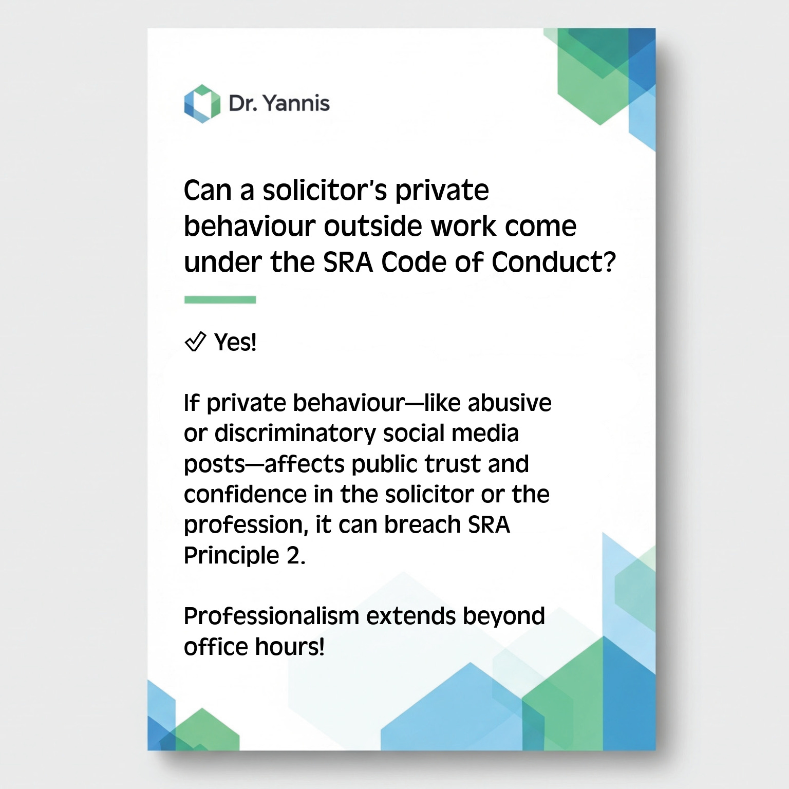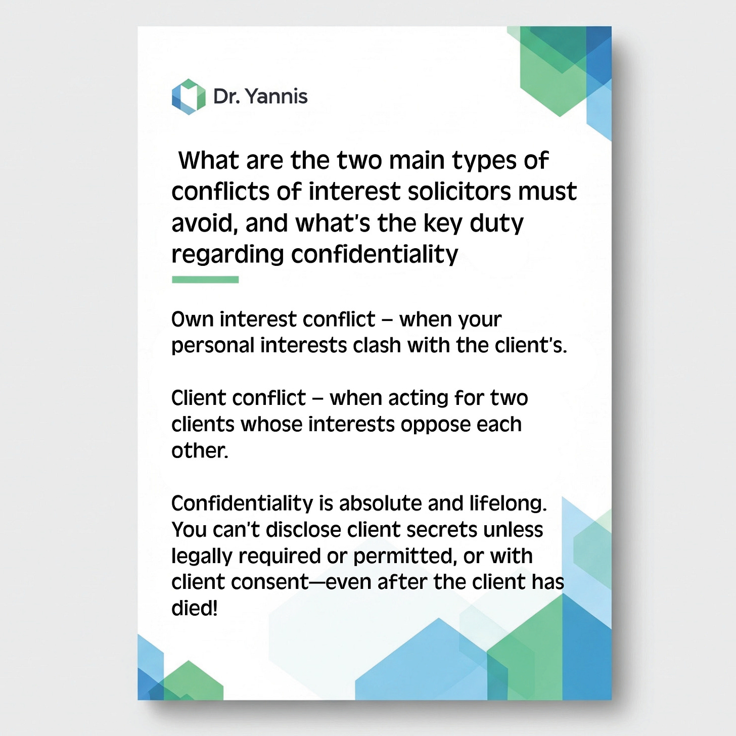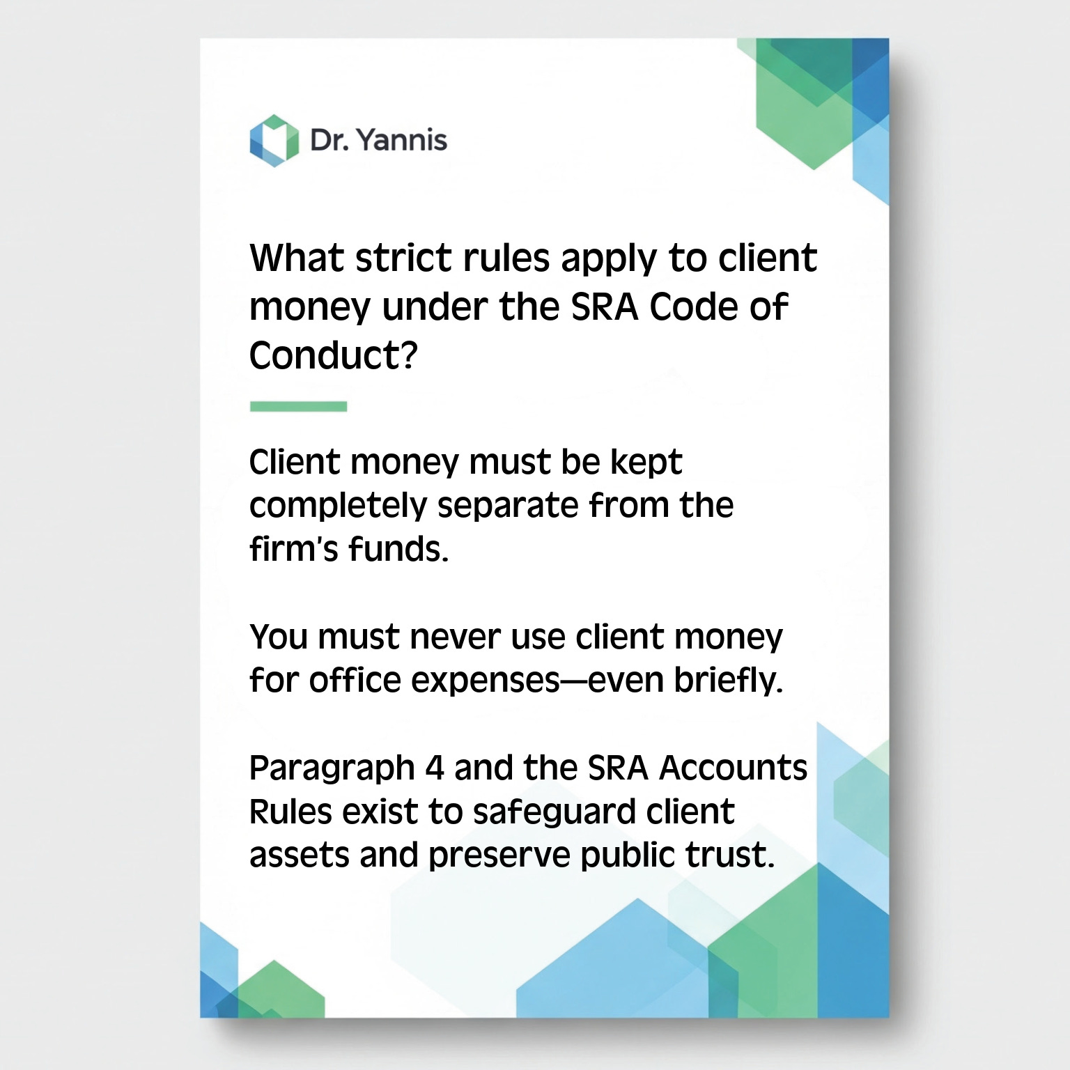 Flashcards: SRA PrinciplesSQE FLK need-to-know info in your hands!Ioannis GlinavosDec 29, 2025ShareThe 7 SRA Principles legal professionals must uphold:Dr Yannis is a reader-supported publication. To receive new posts and support my work, consider becoming a free or paid subscriber.SubscribePreviousNext